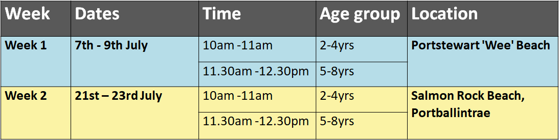 To book simply select either the Portstewart Wee beach or Salmon Rock Portballintrae booking buttons below and find the relevant start date.